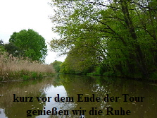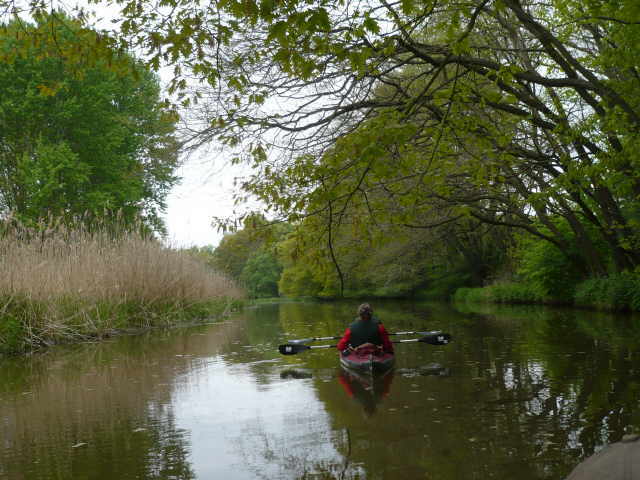 uns ein wenig ins Grübeln brachte. Auf dem Schild war ein Boot mit Paddler abgebildet. Darunter stand geschrieben: ”Aus Umwelt- und Naturschutzgründen ist das Paddeln auf der Spree