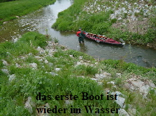 Auch diese Hindernis wurde von uns mit Bravour gemeistert. Diesmal trugen erst die Kinder ihr Boot um und danach waren wir dran. Beim Einsetzen passierte natürlich das was