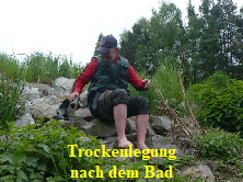 wieder am Ufer hatte, habe ich mich meiner nassen Klamotten entledigt, die Schuhe ausgekippt und bin dann ins Boot gestiegen.