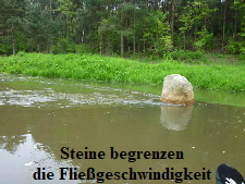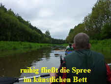 Strecke ist die Spree künstlich begradigt und es befinden sich größere Steine in der Mitte um wahrscheinlich die Fließgeschwindigkeit einzubremsen und das Ufer zu schützen. Es dauerte
