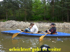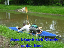 man gerne mal bei den lustigen Videos im Fernsehen zeigt. Ines saß schon im Boot und bei meinem Einstiegsversuch trieb das Boot etwas vom Ufer ab. Ich versuchte einen Spagat und