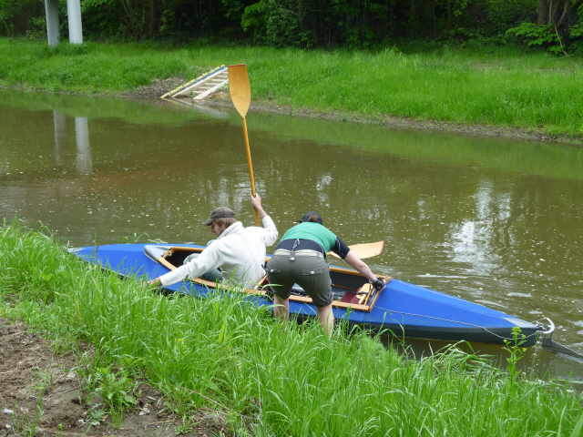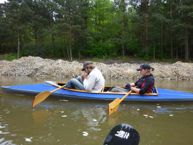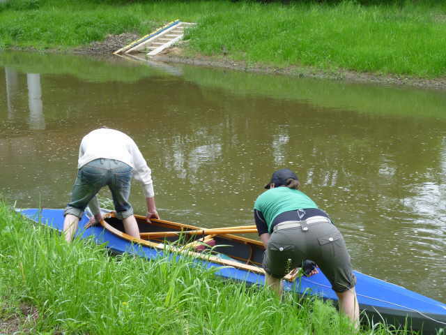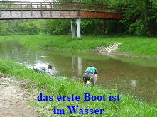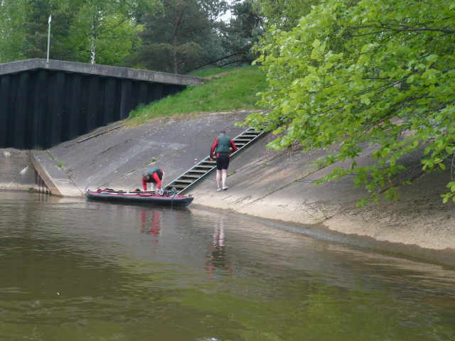zu müssen, habe ich einen beherzten Sprung in die kalte Spree gemacht. Dieses Mal war ich nun bis zum Bauch nass. Aber wir hatten ja die Neo-Shortys drunter und nachdem ich unser Boot