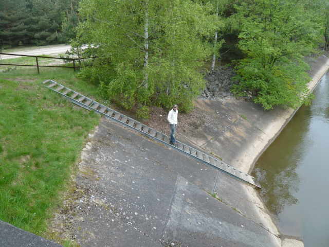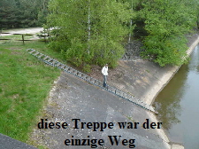 eine Treppe die ebenfalls zum Wasser führte. Gegen diese war die Treppe am ersten Wehr eigentlich Pillepalle. Also allen Mut zusammen nehmen, die Backen aufblasen und hinein ins Abenteuer.