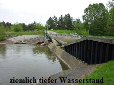 ruhig und gerade. Das Wehr wird mit Schildern bereits vorangekündigt. Also wieder Ausschau nach einer Stelle zum Aussetzen halten. So etwa 20 Meter vor dem Wehr gingen wir an Land. Dann