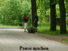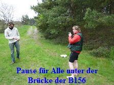 Ein paar Kilometer nach dem Start, fuhren wir unter einer Brücke hindurch. Dort war eine Stelle, die uns sehr gut für unsere erste Pause geeignet schien. Ines und Mathias
