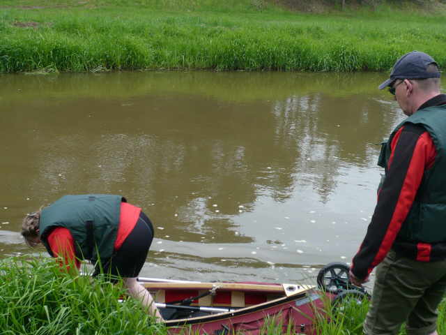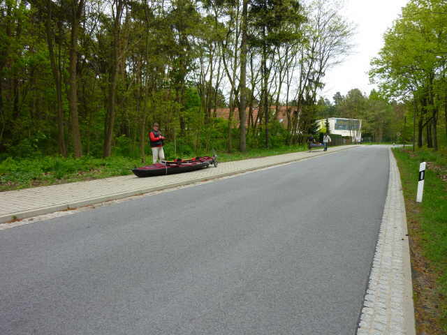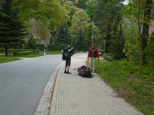 Ines und Mathias hatten eine gute Stelle gefunden um eines der beiden Autos abzustellen. Der Standort war ca. 16 km in Fließrichtung der Spree in Ruhlmühle. Dort ist ein