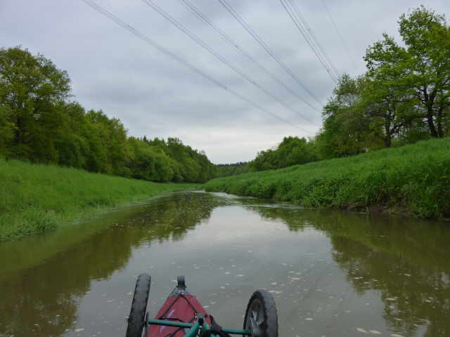 Weiter geht es in Richtung Bärwalde. Laut Beschreibung muss man am Rosensee in Bärwalde vor dem Wehr aussetzen und etwa 30m umtragen. Der See war auf einem breiten Streifen