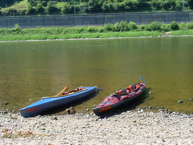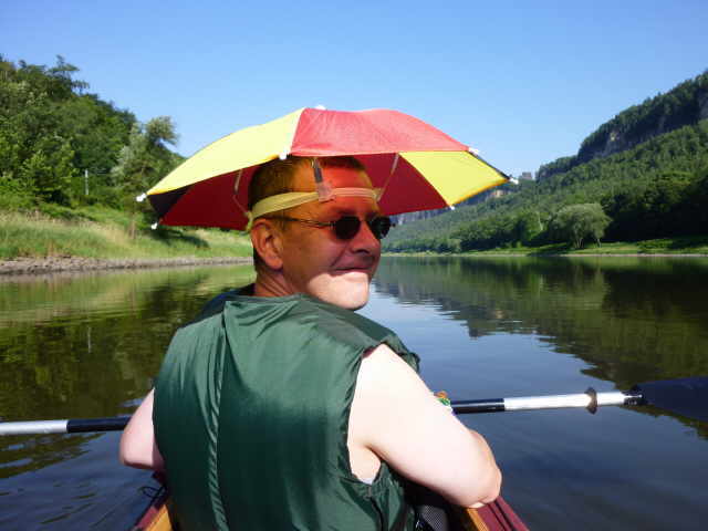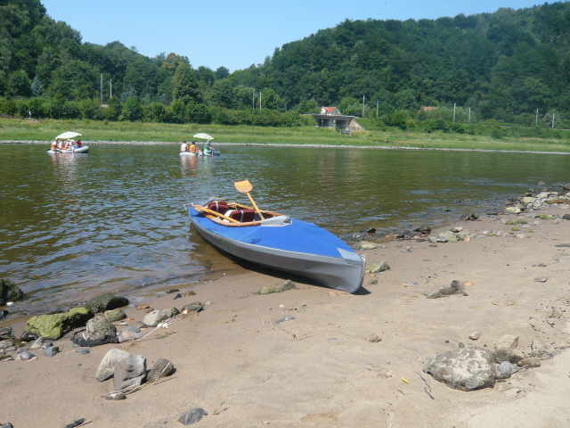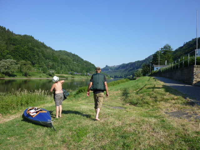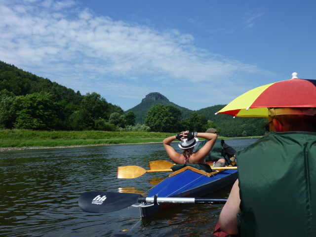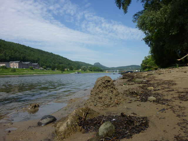 (heißer) wurde es. Nach wenigen Kilometern, kurz hinter Bad Schandau, machten wir unsere Frühstückspause. Erstens um etwas zu essen und zweitens um mal in den Schatten zu kommen.