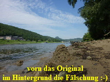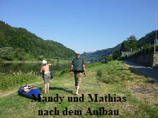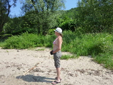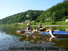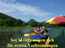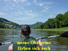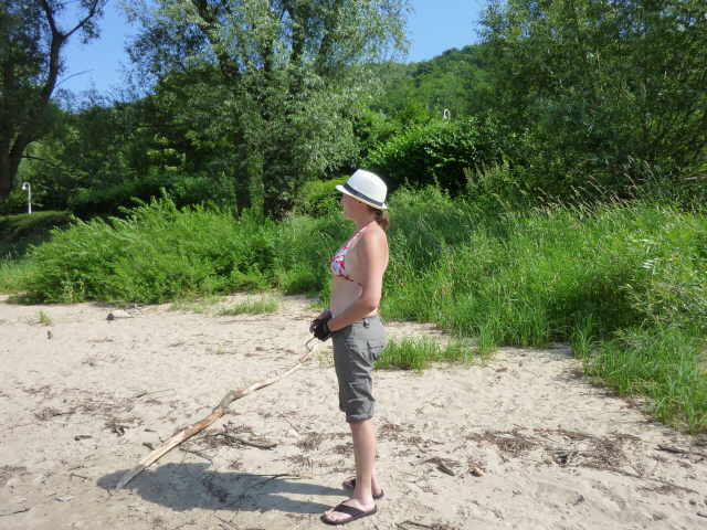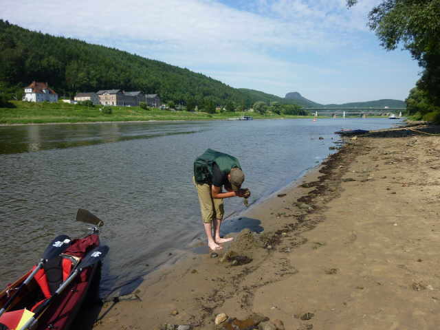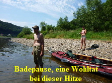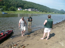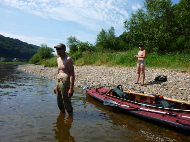 Zwischen Stadt Wehlen und Pirna, mussten wir wegen der großen Hitze noch eine Pause einlegen. Diese Gelegenheit nutzten wir, um uns im Elbwasser etwas abzukühlen. Mandy