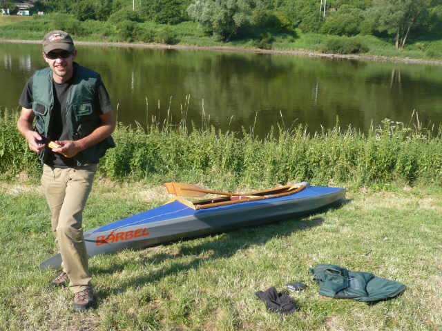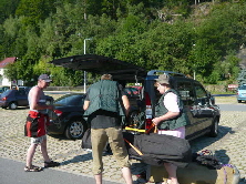 Mal. Wir stellten das Auto auf dem Parkplatz ab und schafften die Boote zum Aufbau.