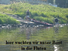 Nach und während des Aufbaus wurde noch mal die öffentliche Bedürfnisanstalt aufgesucht, damit wir nicht gleich nach dem Start anlegen müssen. Dann liessen wir die Boote zu Wasser