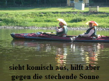 ihr Zentralgestirn gerückt. Um einem Hitzschlag vorzubeugen und Verbrennungen zu verhindern, hatten wir uns bei einem Faschingsanbieter zwei Hüte besorgt, die etwas Schatten spenden