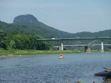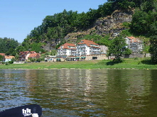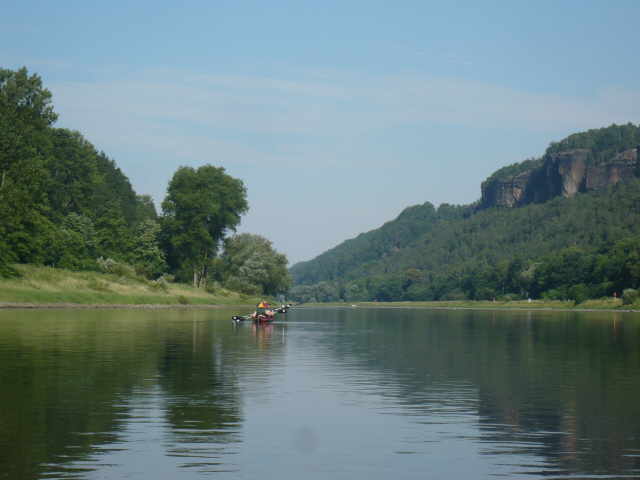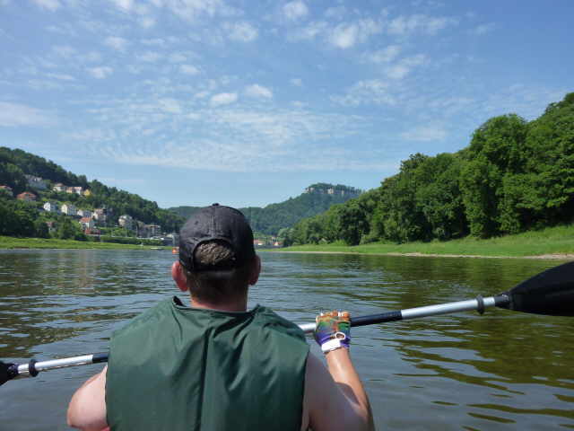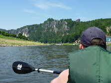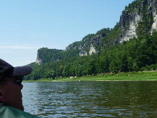 Nachdem wir die Fähre wieder einmal problemlos passiert hatten, paddelten wir an der Bastei vorbei. Wie bei dem Bericht unserer ersten Elbetour bereits erwähnt, hat dieses