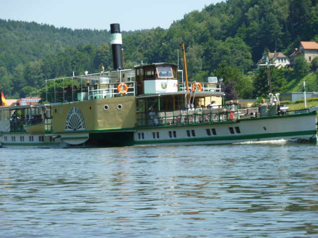 Nachdem wir die Aussicht auf die Bastei genossen hatten, fuhren wir weiter Richtung Stadt Wehlen. Bei der vorigen Fahrt begegnete uns der Ausflugsdamper “August der