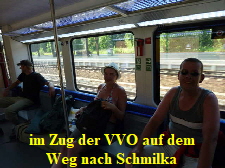 Nachdem wir die Boote aus dem Wasser genommen und zerlegt hatten, liefen wir bepackt auf den Bahnhof, um mit dem Zug der VVO nach Schmilka zurückzufahren.