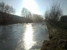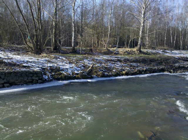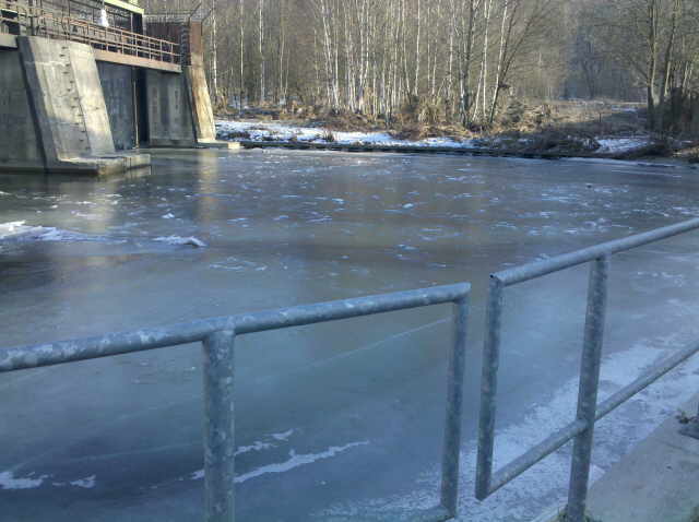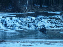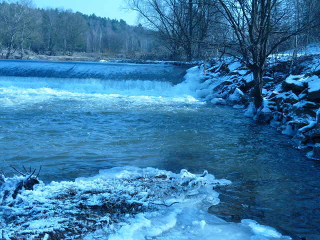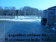 Hirschfelde, fuhren wir nach Nieder Neuendorf, um am Wehr zu schauen. Auch hier eine große Eisfläche und auf dem Umtrageweg ein breiter Strom der sich in die Neisse ergoß.