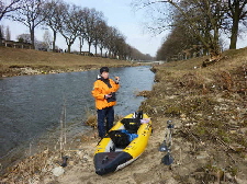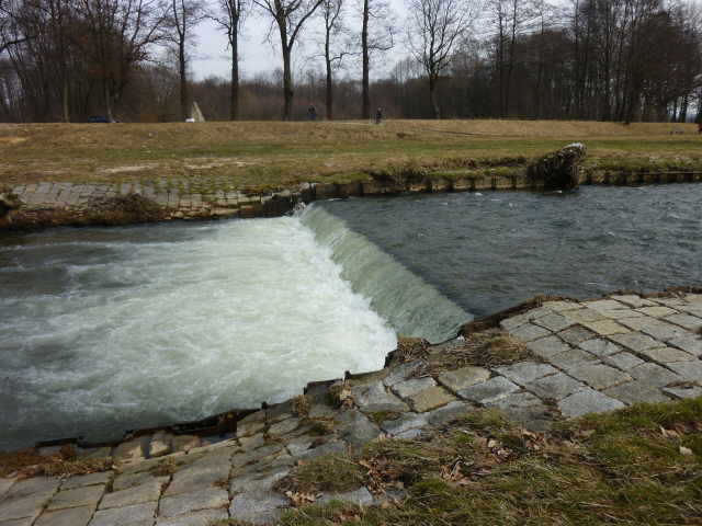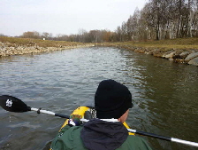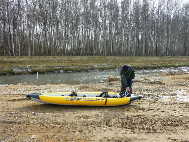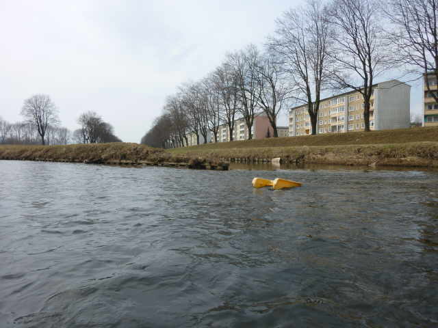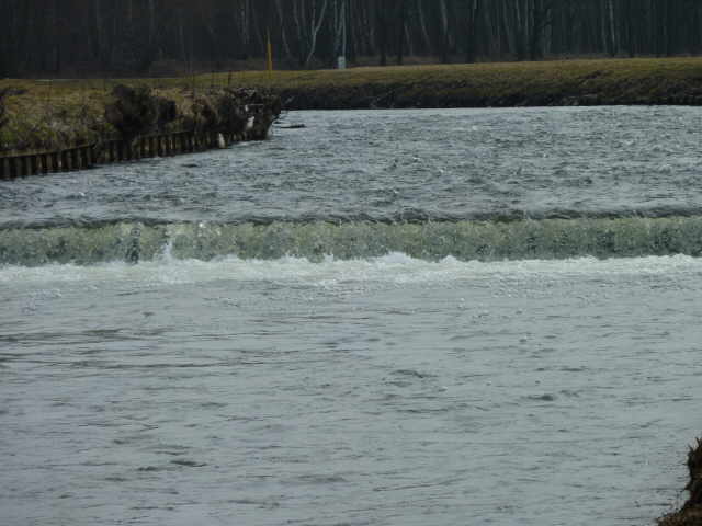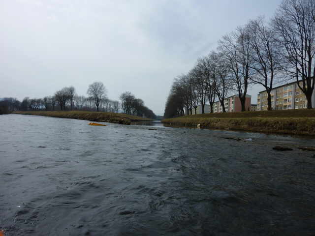 Solschwelle, die Nase tauchte ins Wasser, ein riesiger Schwall Neissewasser überflutete uns und das Boot und wir waren so ziemlich nass.