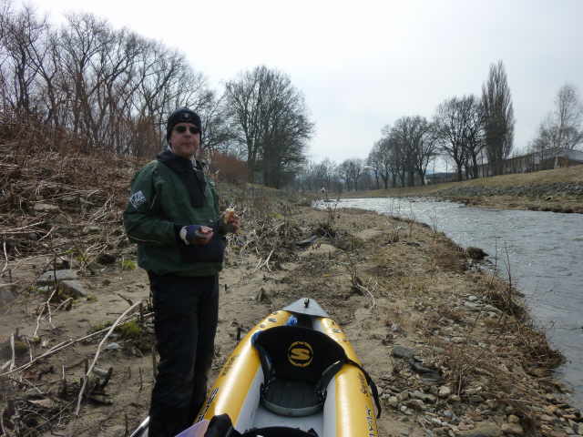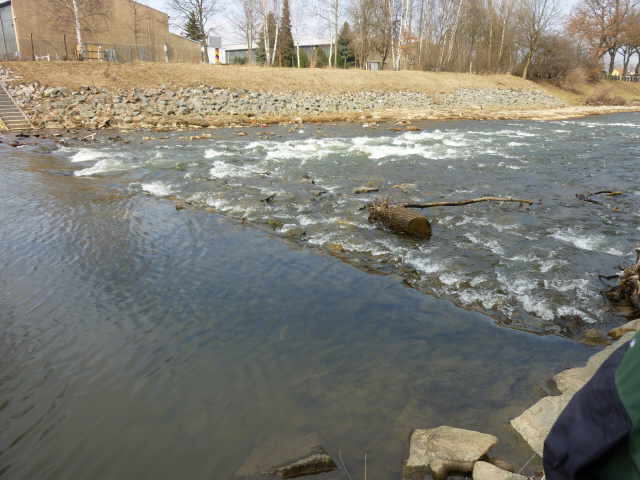 Trotz des anhaltenden Tauwetters führte die Neisse relativ wenig Wasser. Nach ca. 750 m Fahrt, erreichten wir den Dreiländerpunkt (50°52’13.37’’N;