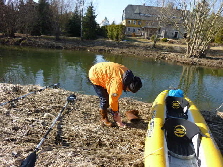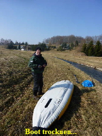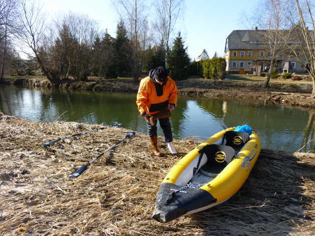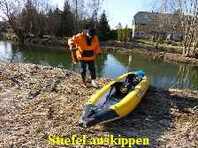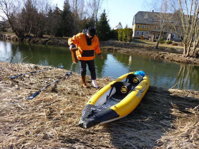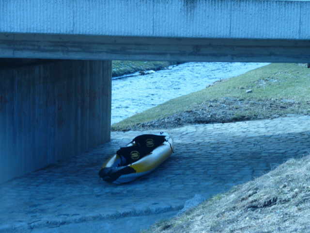 Sitz sehr nass. Mit der Hand fühlte ich wie sich das Boot langsam mit Wasser füllte. Oh je, wir hatten schon befürchtet, dass das Boot beim Fahren über die Steine Schaden erlitten hatte.